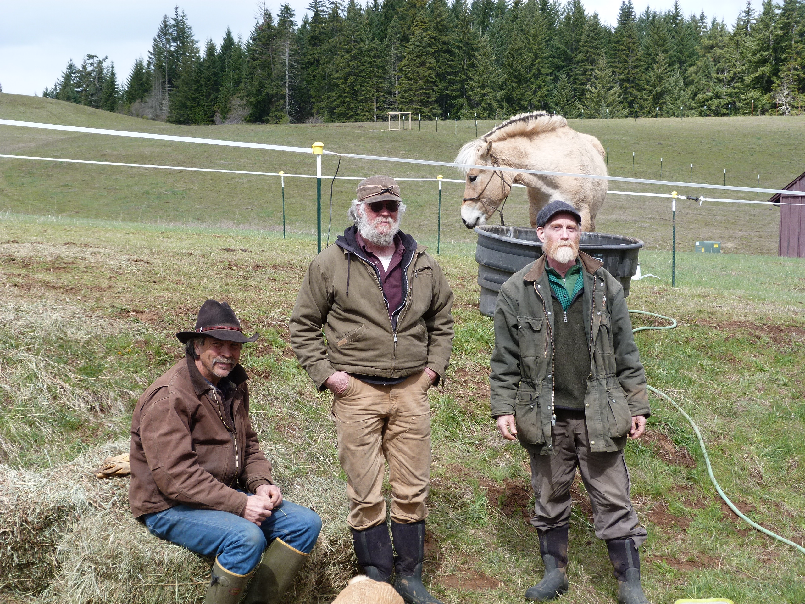 The ponies had arrived Monday, two days before we expected them. I left Gary still working on the fence to their pasture around 7:00 that evening, catching the phone just as I stepped in the door. The caller was a helpful stranger a few miles from here, saying a couple of gentlemen (the ponies’ breeder, Ken and his friend Bill) were stuck on a muddy, primitive road with a horse trailer and wanted to know if they were close enough to simply lead the horses home. Almost nothing is close enough for that. They would have to get the trailer unstuck, and I agreed to meet them in downtown White Salmon. I ran to the pasture to tell Gary.
